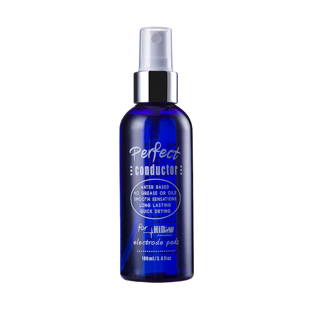 The Perfect Conductor Spray helps to extend the life of your pads and provides a boosted ion-enhanced sensation. Works great with all our premium accessories as well! The 100 ml/ 3.4 oz bottle contains no grease or oils and is water-based with ion conductivity used by professionals. Try it with the AcuBelt, Pro Belt, and the AcuSlippers. It is also indispensable for all HiDow wraps: neck wrap, elbow wrap, wrist wrap, shoulder wrap, knee and foot wraps.